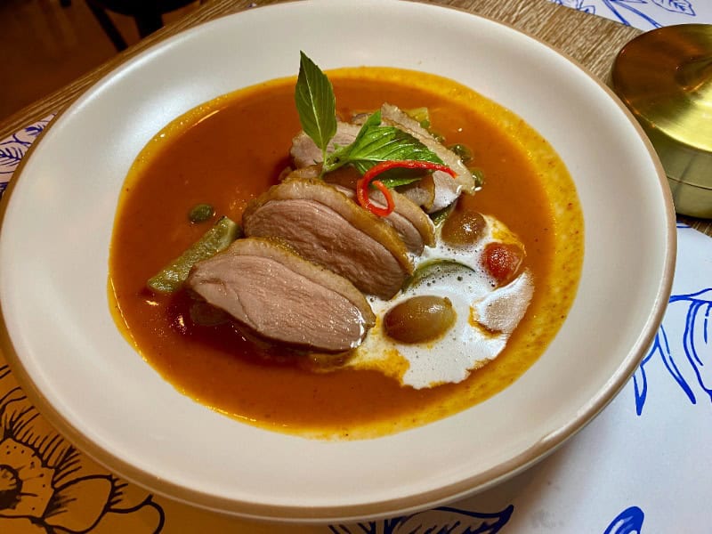 推薦菜式:沙嗲豬扒(385銖)、酥脆荔枝油封鴨紅咖哩(385銖)、泰式炒河粉(195銖)