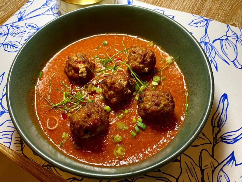 這家位於平河畔一座百年高腳柚木屋內的泰式小餐館,餐廳團隊年輕有活力,採用慢食概念,從原材料到味道都非常用心講究,不是隨便在YouTube上學幾個菜就開餐廳那種,​開張不到一年已入選泰國清邁米芝蓮(米其林)必比登推薦,火速搬到對面更大的店面。菜單提供泰國四個地區的料理,也有一個每天轉換的特別餐單。大廚從不同地區採購原材料,包括來自北大年府安達曼海以傳統捕魚方式捕獲的海魚、來自南奔有機農場的紫莓香米和茉莉香米,單是這點已感覺到用心。菜式質素也在水準之上,推薦椰汁雞湯和泰南咖喱醬炒大蝦,敢說是所有人都會喜愛的味道^^,牛扒炒飯也超美味,飯粒吸收了牛油脂香和蒜香,質感帶點煙韌,我們吃罷立刻再追加一碟,可惜這道菜不在常規餐牌上!整體價格稍高,份量不算大,但考慮到食材和質量,我覺得真的很合理,建議提前訂座。