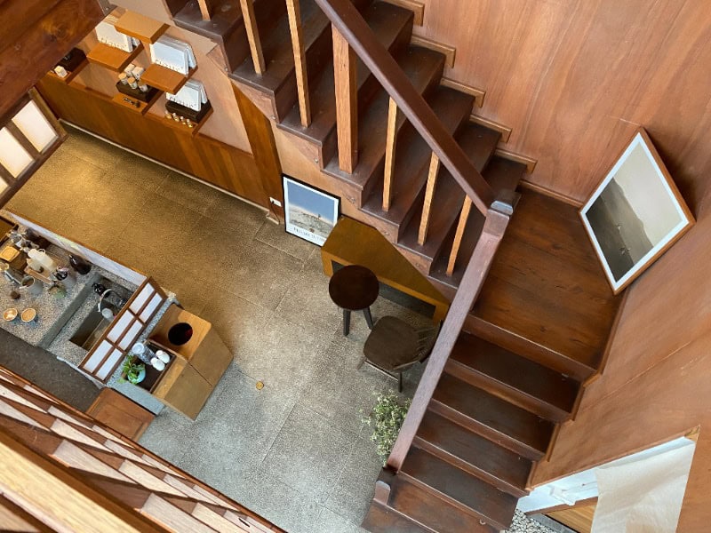靠近古城清邁門、周六夜市入口旁的日式咖啡館,建築為一楝兩層樓的木造房子,在街巷中格外顯眼,單是外觀已令人驚艷。店內裝修布置和諧統一,底層吧台區適合急需要喝上一口咖啡、來去匆匆的過路人,作為不趕時間、想要享受閒情的旅人,建議拾級而上,二樓整體空間展現出濃郁的傳統日式風格,深色調的木質家具、明亮通透的自然光線,營造出沉穩質樸的氛圍,樓梯間設計也非常漂亮,巨型紙吊燈彷彿漂浮在空中的月亮,值得來這裡享受咖啡和音樂。飲料選擇範圍很廣,店內還有烘焙食品和甜點供應,咖啡水準不俗,個人很喜歡這裡的Cookie & Cream Dirty咖啡,甜甜的帶點鹹味,超好喝,就是容量偏少,喝完會想再喝第二杯。