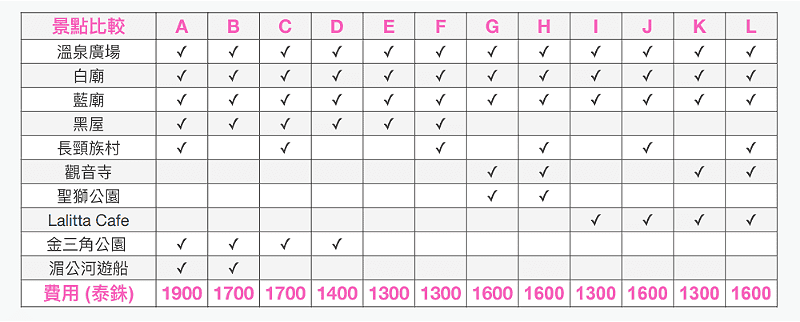清萊 (B) 白廟+藍廟+黑屋+金三角+湄公河遊船+溫泉廣場 1700銖