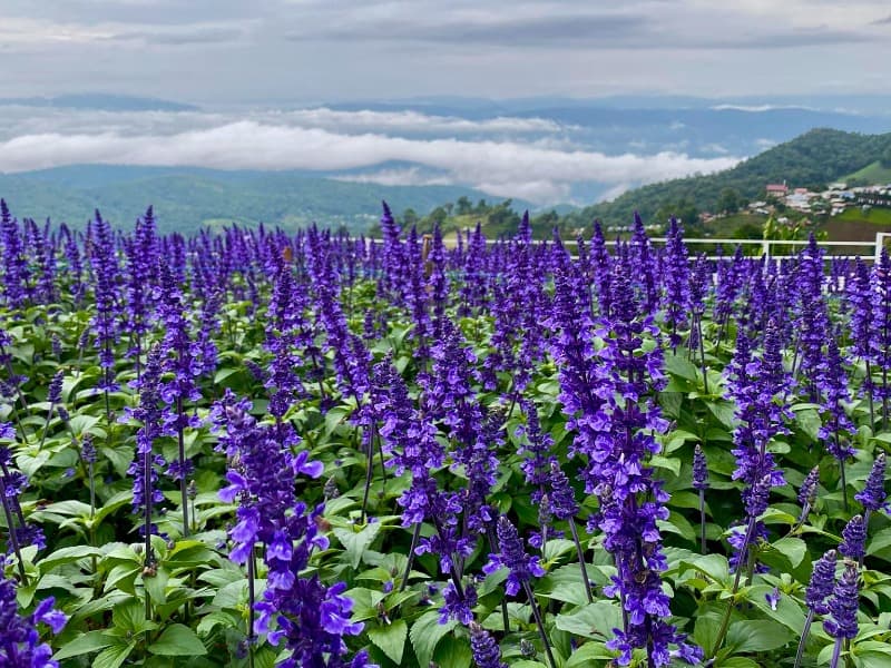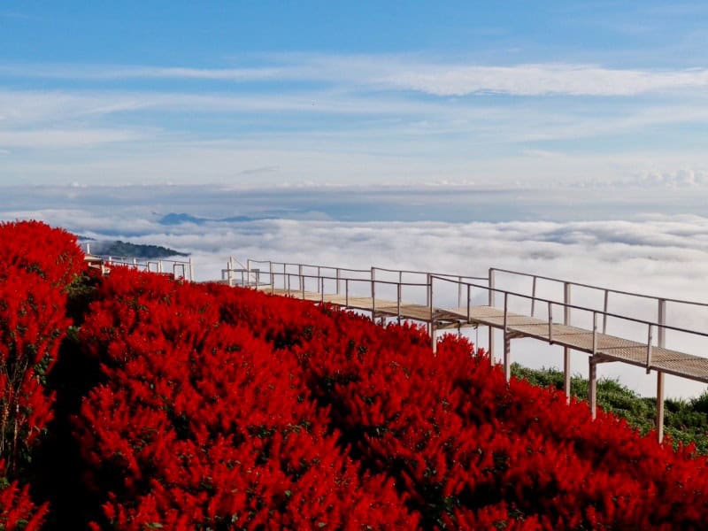 每年蒙占山上最早開放的Ying Yong花園,今年度種植了大大片紅色鼠尾草和藍色鼠尾草,現時已經開始綻放,預計花期會到明年2月。這個花園以超好拍聞名,除了花量多,可以輕易拍出超澎湃的花海效果,還有連綿起伏的山谷景色作背景,令人有置身於雲端的感覺,訪客可以沿著圍繞花田的空中步道一邊漫步一邊拍照,另外花園在本年度新增一個亮點,就是在觀景平台上方置放了一架白色鋼琴,是網美們不能錯過的超夢幻打卡位。