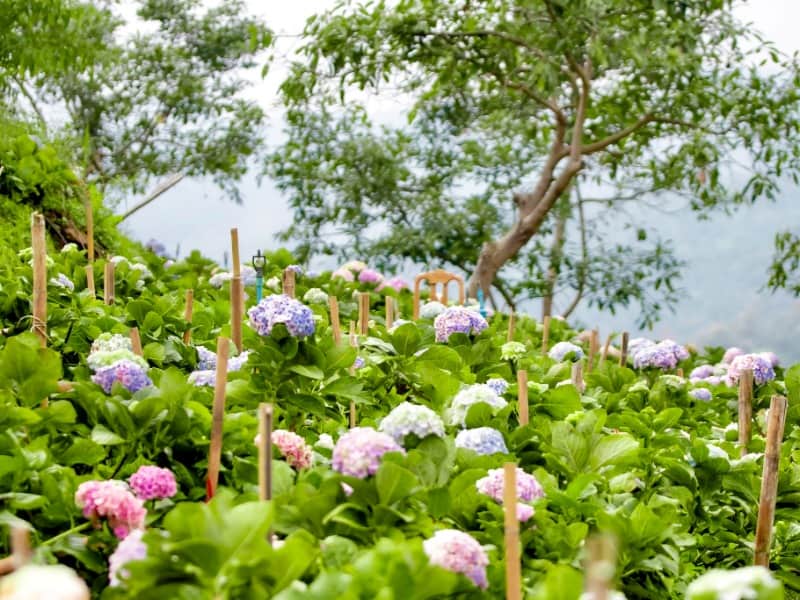 位於山坡上、湄林區面積最大的繡球花園剛於9月中重新開放,這個花場最大賣點是被群山環繞,繡球花遍布山間,無論從那個角度都可以拍出美照,綠意盎然的自然環境也讓人非常療癒,另外花園小徑是一座木橋,因此不需要擔心會弄髒鞋子。要留意是由於道路入口狹窄陡斜,所有訪客必須轉乘接駁車,花園入場費已包含由停車場往來花田的接駁車,並可免費借用靴子和傘子,場地亦有花籃、背包籃等拍照道具出租。