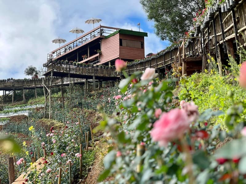 蒙占山山頂除了以花海馳名,也有不少超好拍的橘子園,泰國本地遊客都非常熱衷帶孩子到這些果園體驗。位於山頂上的Pang Hwa既是花園也是橘子園,對於有很多景點想去、行程超緊湊的旅人來說,這個可以賞花又可以採摘橘子的場地可謂非常圓滿了。果園擁有360度怡人的自然山景,整個地區種植了各種類型的花卉,並建有一座竹橋,非常適合觀景,所有道具包括靴子、花籃、背包籃等等都是免費借用的。這裡還有一家小咖啡館,提供飲料、烘焙食品和聖誕道具角,裝飾著聖誕裝飾,滿足一眾打卡狂熱者,在每年11月下旬橘子成熟後,更可以親自體驗採摘橘子。