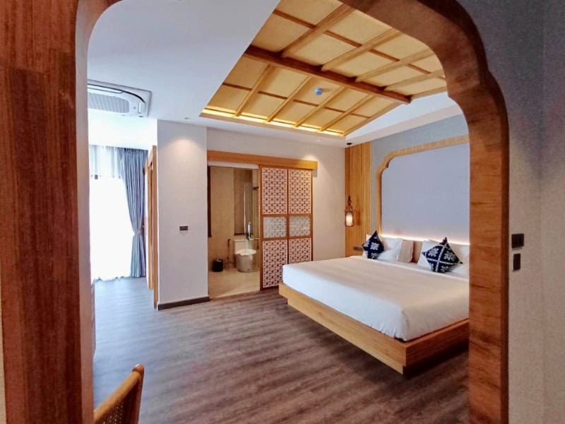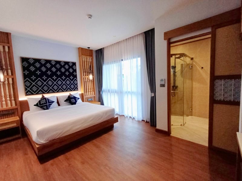 • 精品酒店樓高三層,裝修採用現代蘭納現代風格。35間客房均設有浴缸,在跑了一天整密行程後可以舒適地泡澡放鬆身心。最基本的標準房有344平方尺,除了雙人大床房和雙床房,並有三人房供應,三位好友出遊可以不用分房睡。