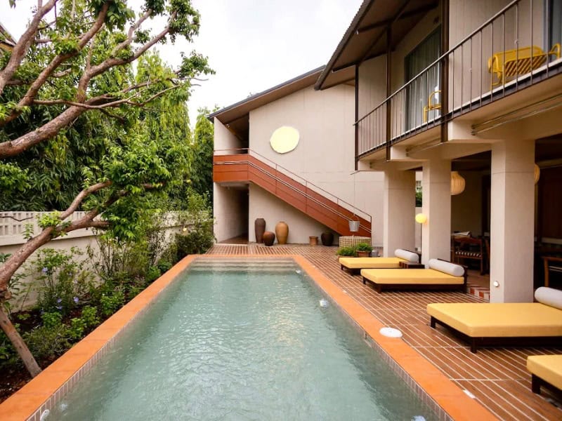 • 位置就在古城西北角,擁有絕佳的地理優勢,緊鄰就是帕邢寺、柴迪隆寺、周日市集等景點,前往尼曼、清邁夜市、平河畔等區域也非常方便。房型分為園景套房及泳池套房,泳池套房附設私人恆溫泳池,水溫可調校,最驚豔是頂層的Doi Suthep Pool SuiteGlass Pool Suite,自帶透明玻璃幕牆私人泳池,完全就是為打卡而設,想影多久、想怎樣影,完全不用理會別人的眼光,即使房價不便宜,也有超多人搶著入住,必須早早預訂,情侶夫妻必選。