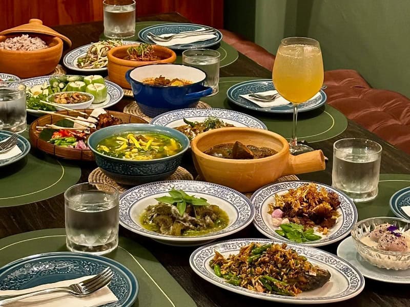 被米芝蓮指南形容為隱藏的寶石,這間以米飯料理為主的泰式餐廳由兩夫婦合力經營,在澳洲長大的男主人Rachanan負責做菜,在經典泰菜中加入創意,太太Jawaree則充當食物造型師,每道菜都裝飾著水果和食用花,擺盤色彩繽紛,賞心悅目,是清邁人氣網紅餐廳之一。食材從泰國各處搜羅回來,茉莉香米由自家米田種植,蔬菜是有機的,味道也是水準之上,五色飯糰是必點的,炸魚柳配香茅沙律、芭蕉葉蒸咖喱魚和炸脆米河蝦也很美味。餐廳在清邁市以東的山甘烹區(San Kamphaeng),很建議安排在周末前往,逛完附近的Chamcha Market後再步行來這裡用餐。